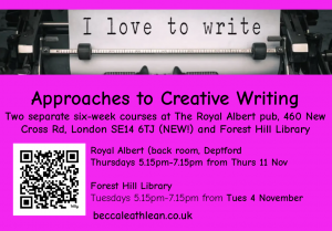 Due to popular demand, I’ll be starting my courses again, in sync! Course 1: ‘Approaches to Creative Writing’ will be running at Forest Hill Library